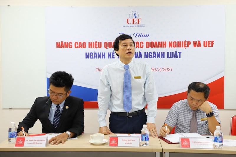 Mở đầu buổi tọa đàm, ông Đỗ Quốc Anh - Phó Chủ tịch Hội đồng trường đã chia sẻ về chất lượng chương trình đào tạo của UEF nói chung và hai ngành Kế toán, Luật nói riêng. UEF là một trong những trường đại học đầu tiên của cả nước thực hiện kiểm định chất lượng theo Bộ tiêu chuẩn mới.